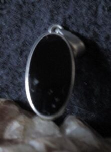This powerful deity is attached to an offering: Solid Sterling silver pendant with black oval stone measuring about 1 1/4 inches.