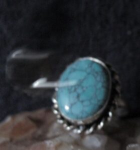 This powerful deity is attached to an offering: Turquoise stone silver plated ring size 9 1/4 (20.38 Europe)