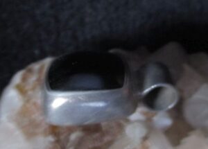 This powerful deity is attached to an offering: Sterling silver black onyx stone rectangular pendant measuring about 1 1/4 inches
