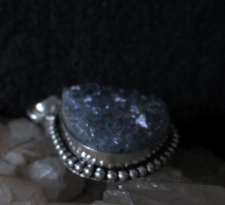 This powerful deity is attached to an offering: silver plated geode dark blue stone measuring about 1 1/2 inch