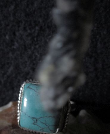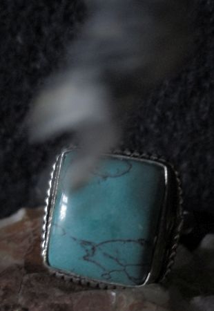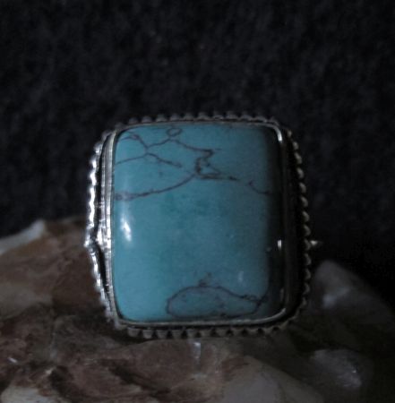This powerful deity is attached to an offering: silver plated ring with turquoise stone size 7 3/4 U.S (16.45 Europe)